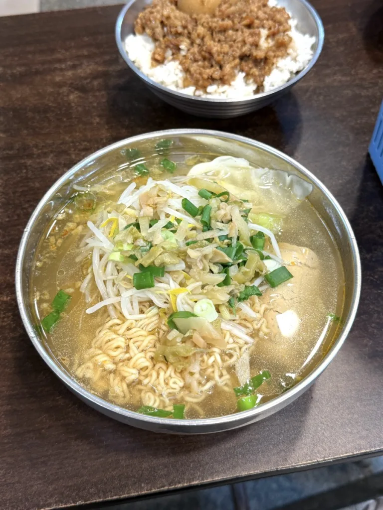 是說背景有一碗滷肉飯,那是拍照的那天,併桌的大哥點的點的,也是超大一碗。這家店的位置不多,常常要併桌。