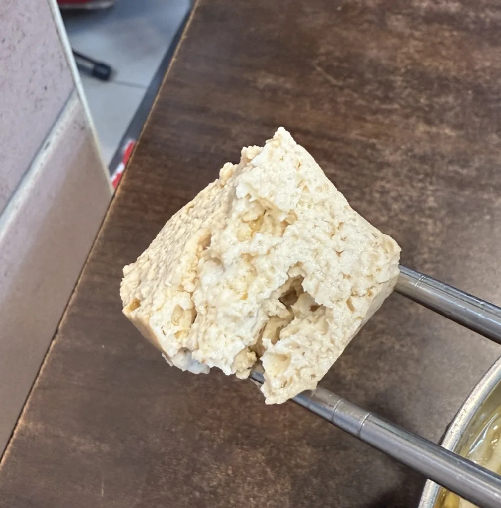 這家店的臭豆腐都被燉的超級透,證據就是豆腐裡面有很多空洞,把湯汁吸得飽飽的。豆腐本身又臭的恰到好處。