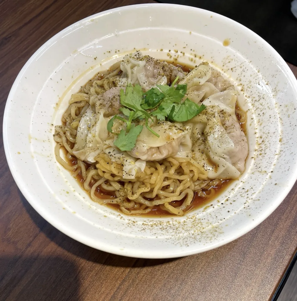 這碗麵吃一口就驚為天人,醬汁微麻帶點椒香,混合出種讓人上癮的香味,麵條很有嚼勁,真的是忍不住一口接一口,我大概不到五分鐘就吃完了,真的停不下來。老闆看到我要結帳還很驚訝「你怎麼吃這麼快」。