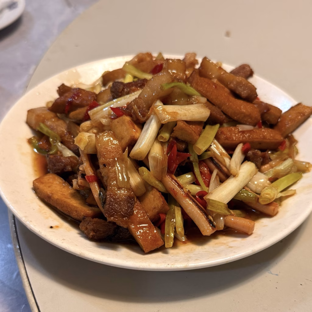 但我比較喜歡現在的口感,尤其是那個豆乾把湯汁吸得飽飽,咬下去之後的魷魚/五花肉的香味和豆乾的豆香一口氣在嘴裡散開,光是這一盤就可以配整碗飯了。