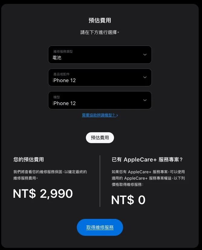 Phone系列現在回原廠換電池不便宜啊,像我的iPhone 12要近3,000元1