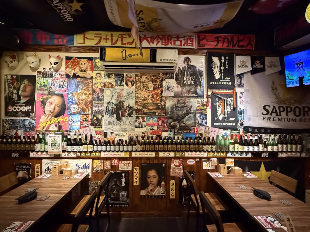 店裡面貼滿了各式來自日本的原汁原味的海報和酒瓶,店內氣氛真的超像置身日本。