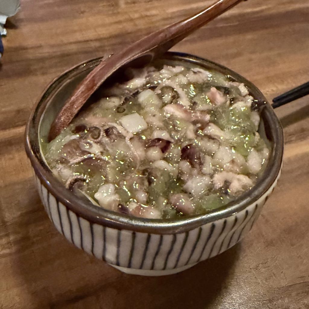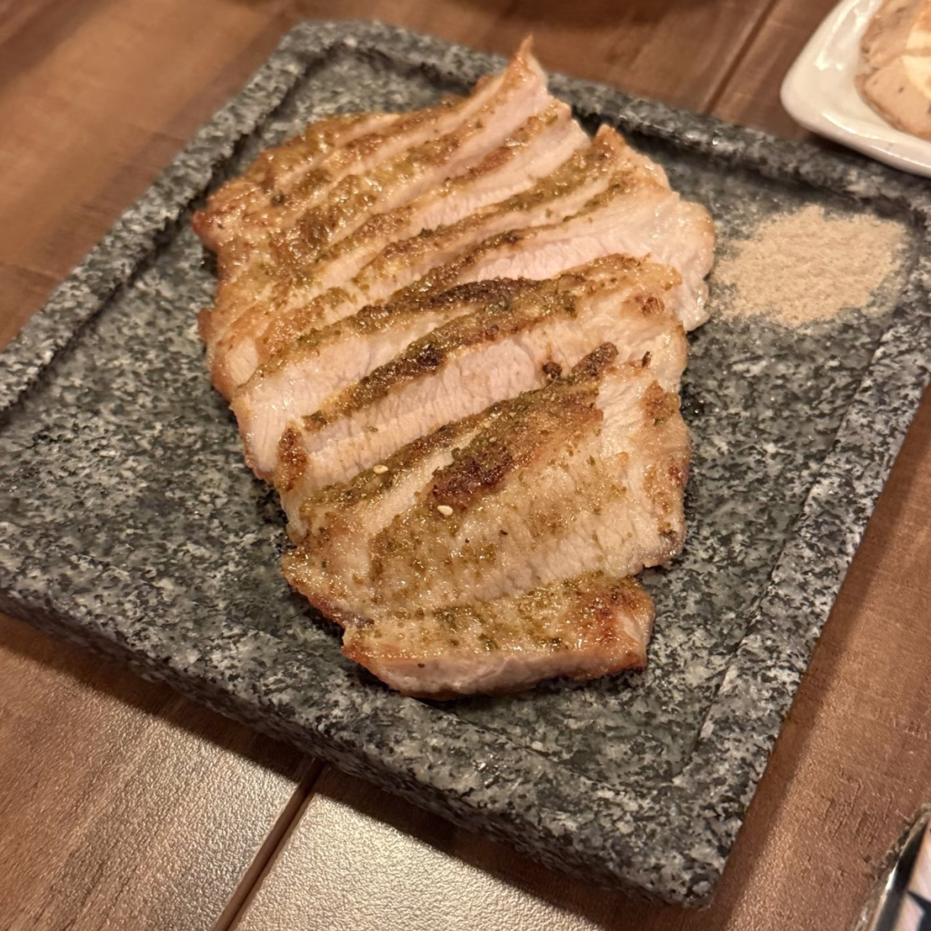 上圖是我們那天最後一道ending的「蔥鹽黑毛豚舌」,濃郁的蔥鹽味和柔軟的豬舌肉,在嘴裡和諧地融合在一起,超過癮。