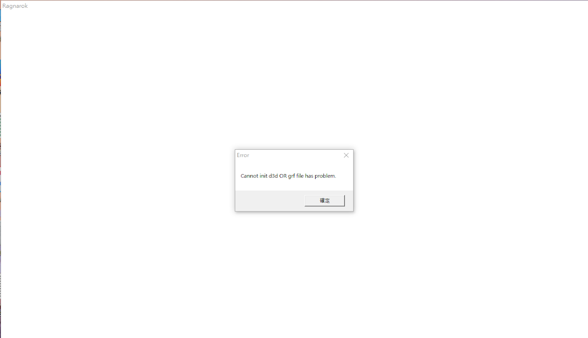 最常遇到的問題之一是開啟遊戲後遊戲視窗一片空白,然後跳出一個Error訊息:Canot init d3d OR grf files has problems。