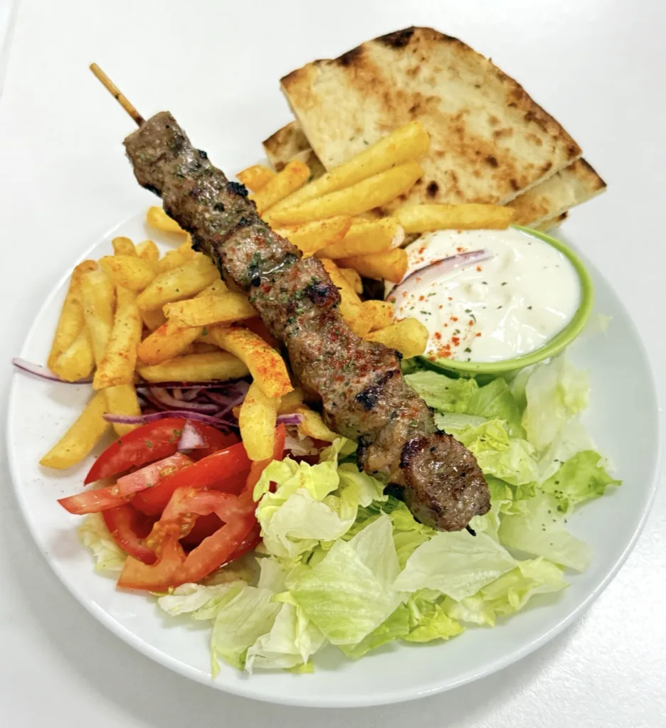 其中肉串,我覺得羊肉是最好吃的,香嫩多汁,羊腥味恰到好處不嗆鼻,一口接一口真的停不下來。薯條炸得酥脆,就算冷掉也不會軟爛。捲餅帶有淡淡的肉桂香,沾著優格吃意外的搭,當然啦優格最搭的果然還是生菜的部分。